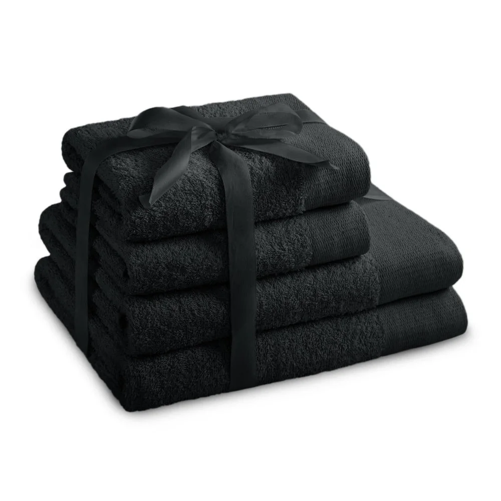Sada 4 černých froté bavlněných ručníků a osušek Amari Osušky