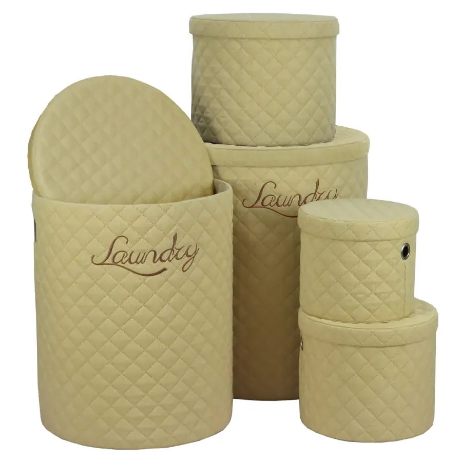 Praktická sada pěti kulatých košů na prádlo DT3007 BEI nabízí ideální řešení pro třídění a ukládání prádla v každé domácnosti. Koše jsou potaženy jemnou látkou v elegantní béžové barvě, která zajišťuje příjemný dotek a nadčasový vzhled.
