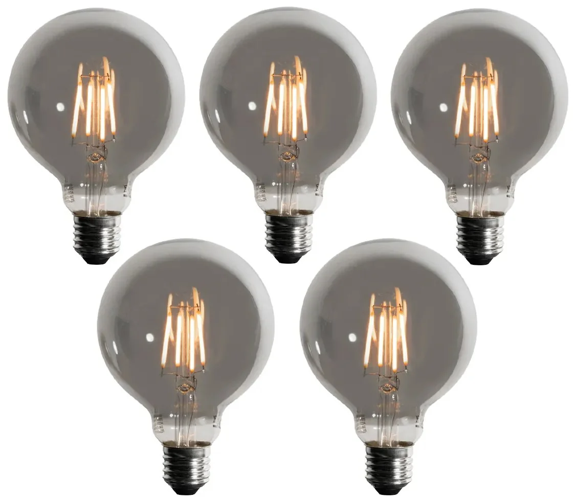 Tato sada pěti stylových LED žárovek s kouřovým povrchem v designu G95 přináší do vašeho domova elegantní a tajemnou atmosféru. S teplým světlem o teplotě 1900K vytvářejí příjemné jantarové záření, ideální pro relaxační večery nebo romantické chvíle.