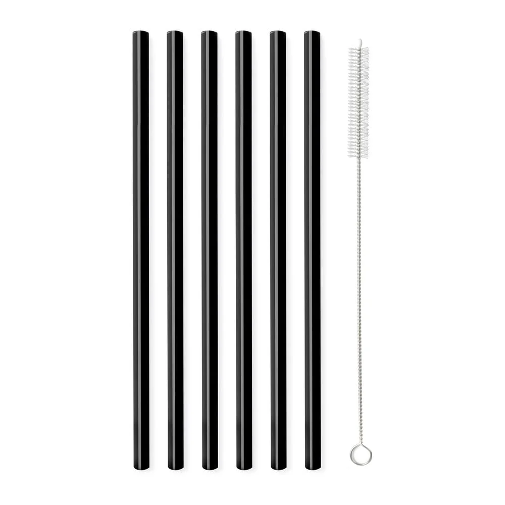 Sada 6 černých skleněných brček 20 cm Vialli Design Brčka