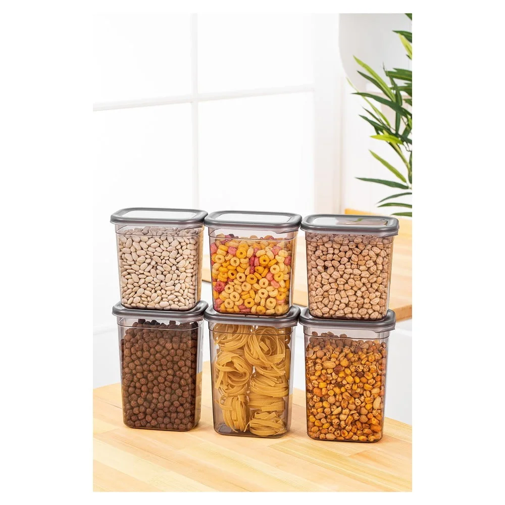 Praktická sada šesti dóz na skladování potravin je ideální pro uspořádání vaší kuchyně. Každá sada obsahuje tři menší krabičky o objemu 1150 ml, které jsou vhodné pro menší porce nebo svačiny, a tři větší o objemu 1500 ml, perfektní například pro skladování obilovin nebo sušeného zboží.