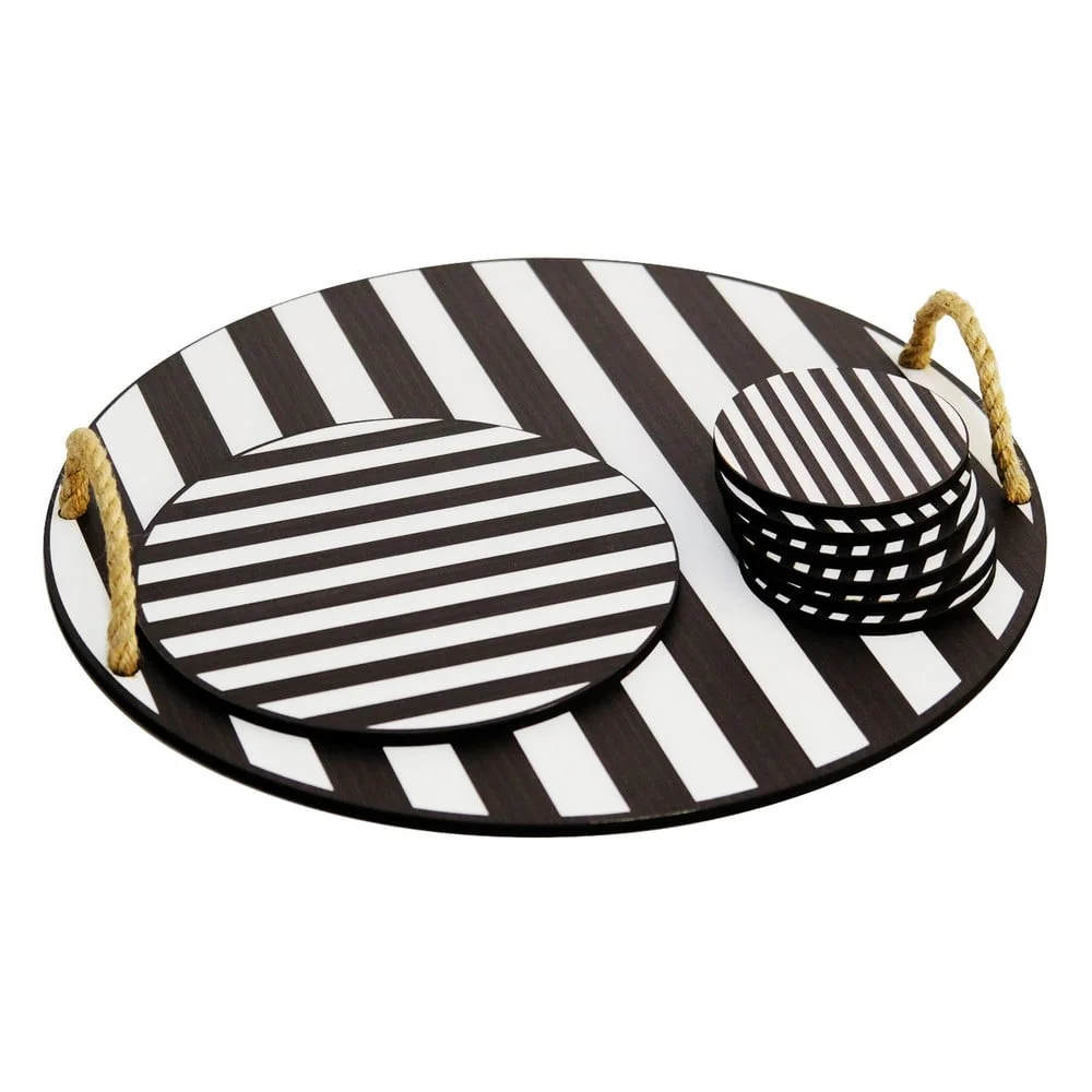 Sada dřevěných podtácků Hermia 8 ks černo-bílé Podtácky