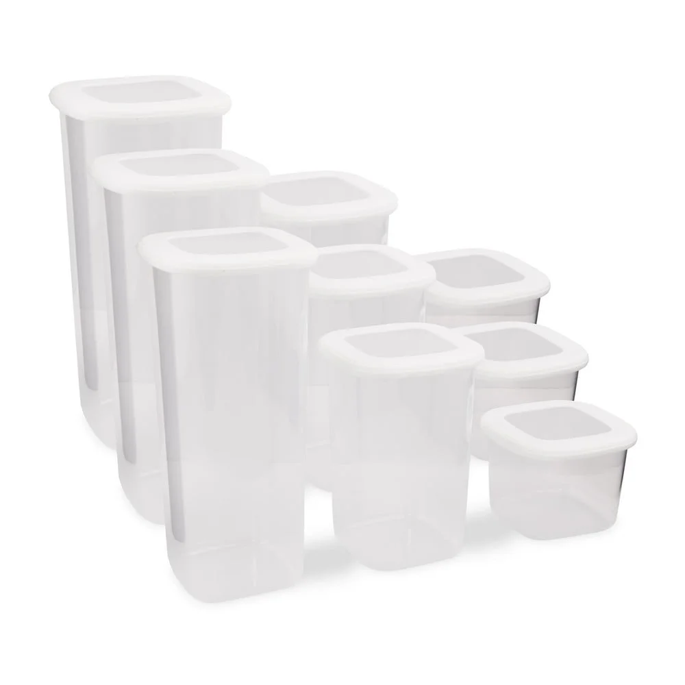 Organizujte svou kuchyni efektivněji s touto praktickou sadou 9 plastových dóz na potraviny. V balení najdete tři různé velikosti, které vám umožní skladovat potraviny v různých objemech a rozměrech. Dózy s objemem 500 ml, 1200 ml a 1750 ml jsou navrženy tak, aby perfektně seděly do každé kuchyňské skříňky nebo lednice, a usnadní vám přehledné uskladnění potravin. Vysoce kvalitní materiál zaručuje dlouhou životnost a snadné čištění, což je činí ideální volbou pro každodenní použití. Tento systém vám pomůže udržet potraviny déle čerstvé a uspořádané, a zároveň šetří místo v kuchyni.