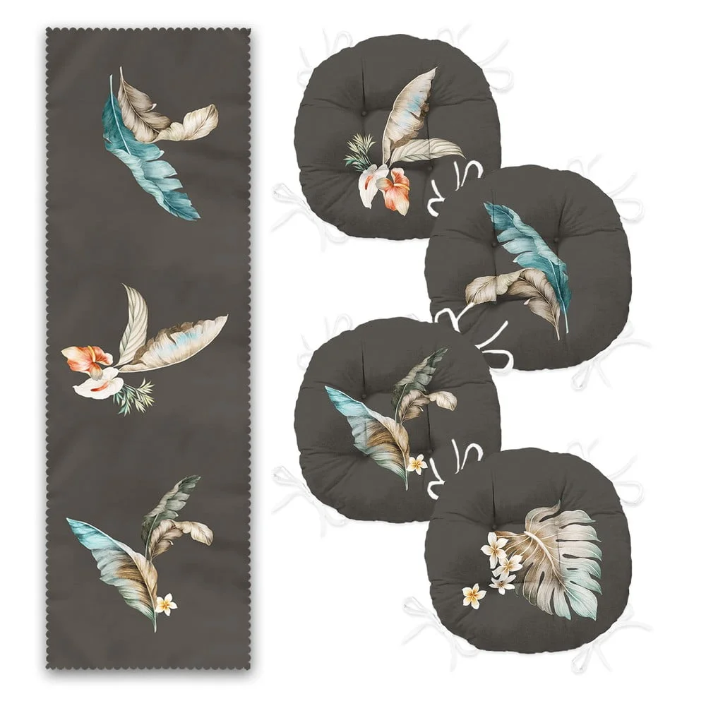 Vylepšete svůj jídelní prostor s elegantní sadou, která obsahuje čtyři podsedáky na židle a stylový běhoun na stůl. Tyto prvky v atraktivním designu nejenže zvýší komfort při stolování, ale také dokonale dolaďí vzhled vašeho interiéru.