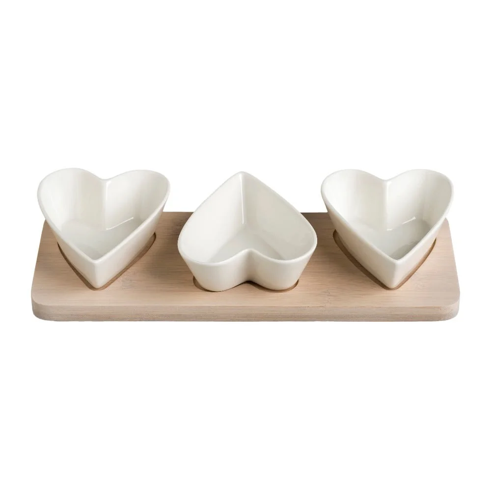 Objevte ideální servírovací set, který zpestří každý stůl. Tato elegantní sada tří misek vyrobených z kvalitního porcelánu je umístěna na přírodním bambusovém podnose, což dodává celému setu sofistikovaný vzhled. Díky svému designu je nejen praktickým pomocníkem při servírování, ale i stylovým doplňkem, který okamžitě zaujme vaše hosty. Tento set je skvělou volbou pro všechny, kdo ocení funkčnost a estetiku v jednom. Umožní vám snadno předvést vaše kulinářské výtvory a zároveň přidá na eleganci každé příležitosti. Pokud hledáte univerzální a krásný doplněk pro stolování, tento set je přesně to, co potřebujete.