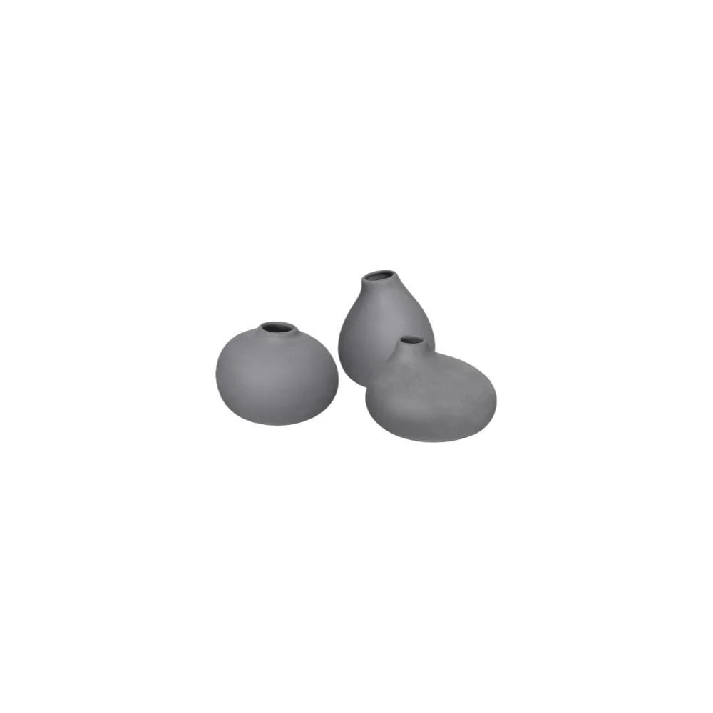 Elegantní sada tří tmavě šedých porcelánových váziček s výškou 9 cm je ideální pro zdobení vašeho domova nebo jako originální dárek. Tyto vázy přinášejí moderní a minimalistický vzhled, který se snadno sladí s různými dekory.