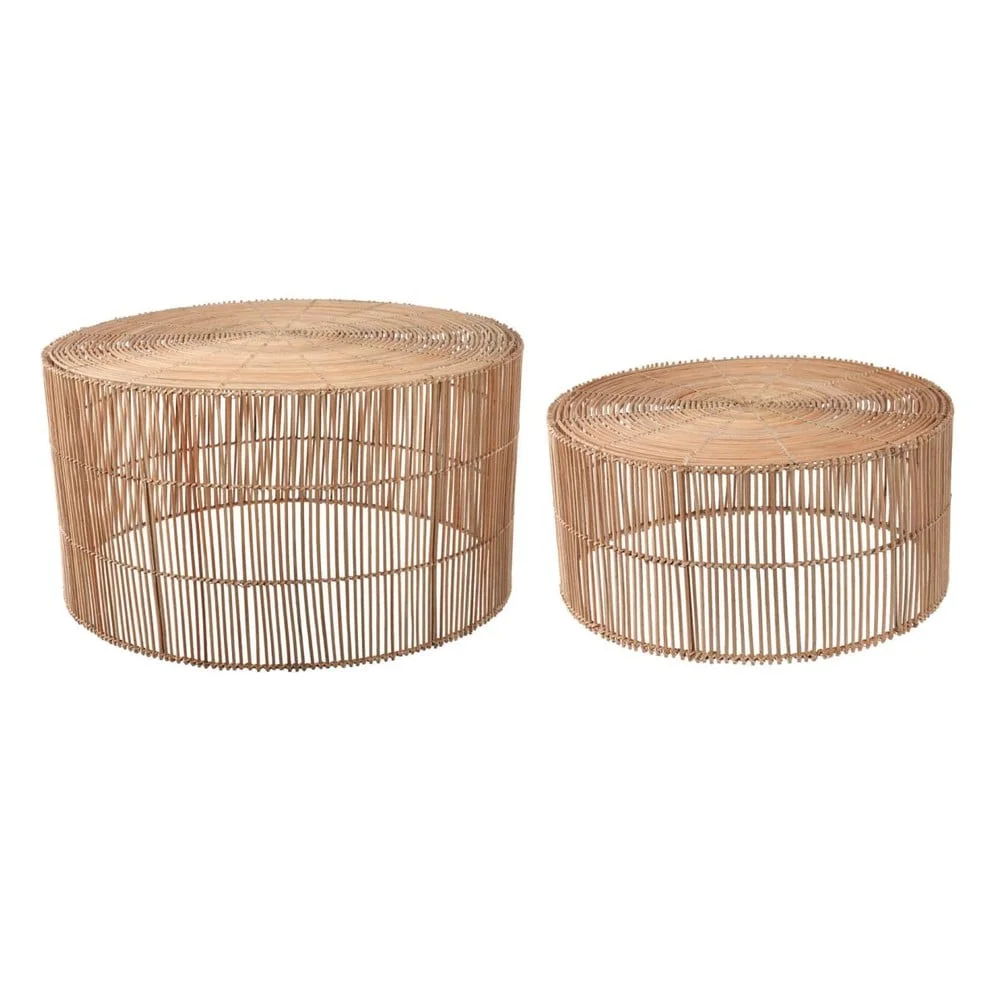 Objevte praktickou a stylovou sadu ratanových konferenčních stolků, která se skládá ze dvou kusů v přirozené barvě. Tyto stolky s průměrem 66 cm jsou ideální pro vaše obývací pokoj nebo lounge zónu, přičemž jejich přírodní vzhled dodá místnosti útulnou atmosféru.