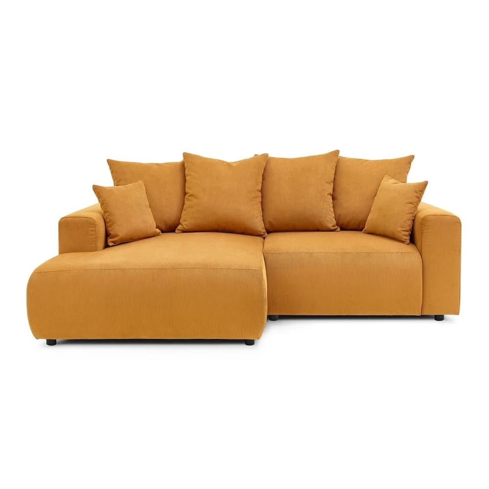 Sametová rohová pohovka Enjoy v okrové žluté barvě Rohové sedací soupravy