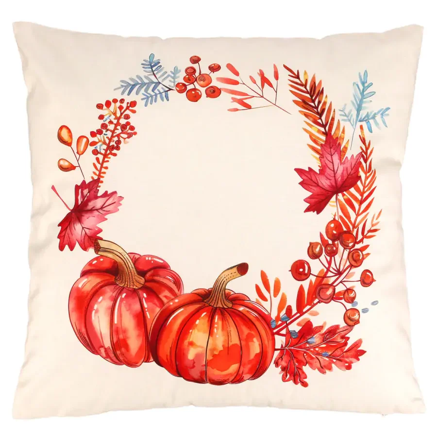 Polštář s podzimním motivem dýní a barevného listí navodí v interiéru hřejivou atmosféru pro chladné dny. Sametový povrch je na dotek jemný a působí luxusně, zatímco rozměry 45 × 45 cm ho činí ideálním doplňkem na pohovku i křeslo.