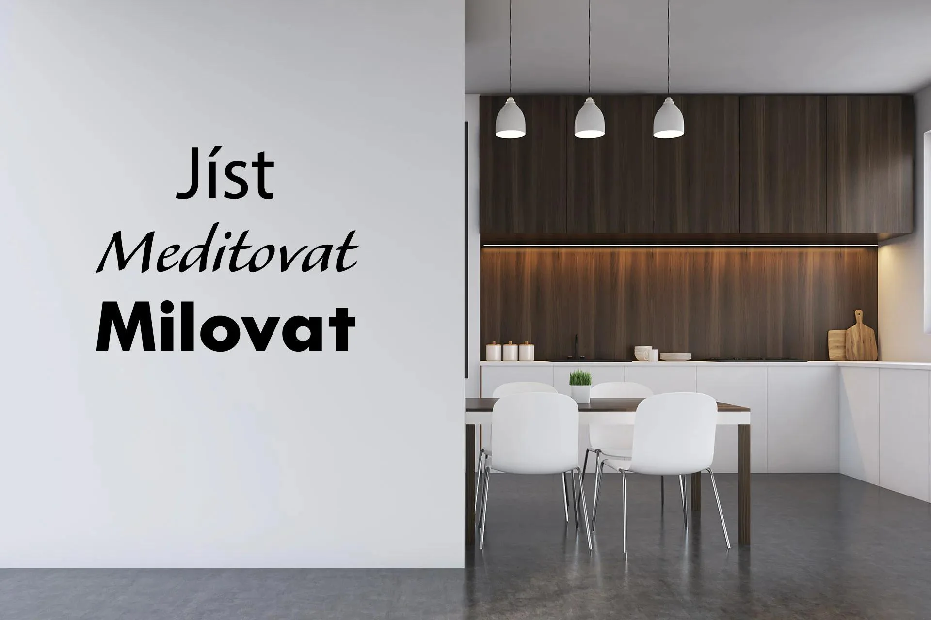 Parametry produktu Samolepka na zeď Jíst, meditovat, milovat 40x31 cm černá