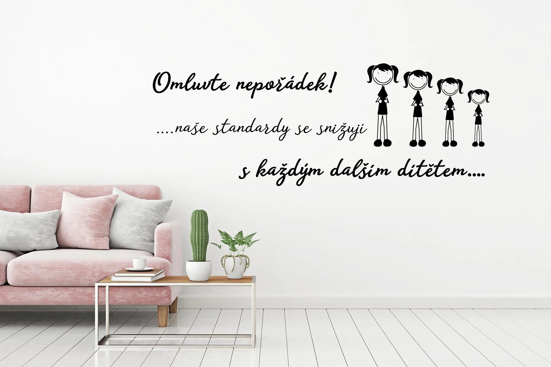 Parametry produktu Samolepka na zeď Omluvte nepořádek Černá 70x25cm