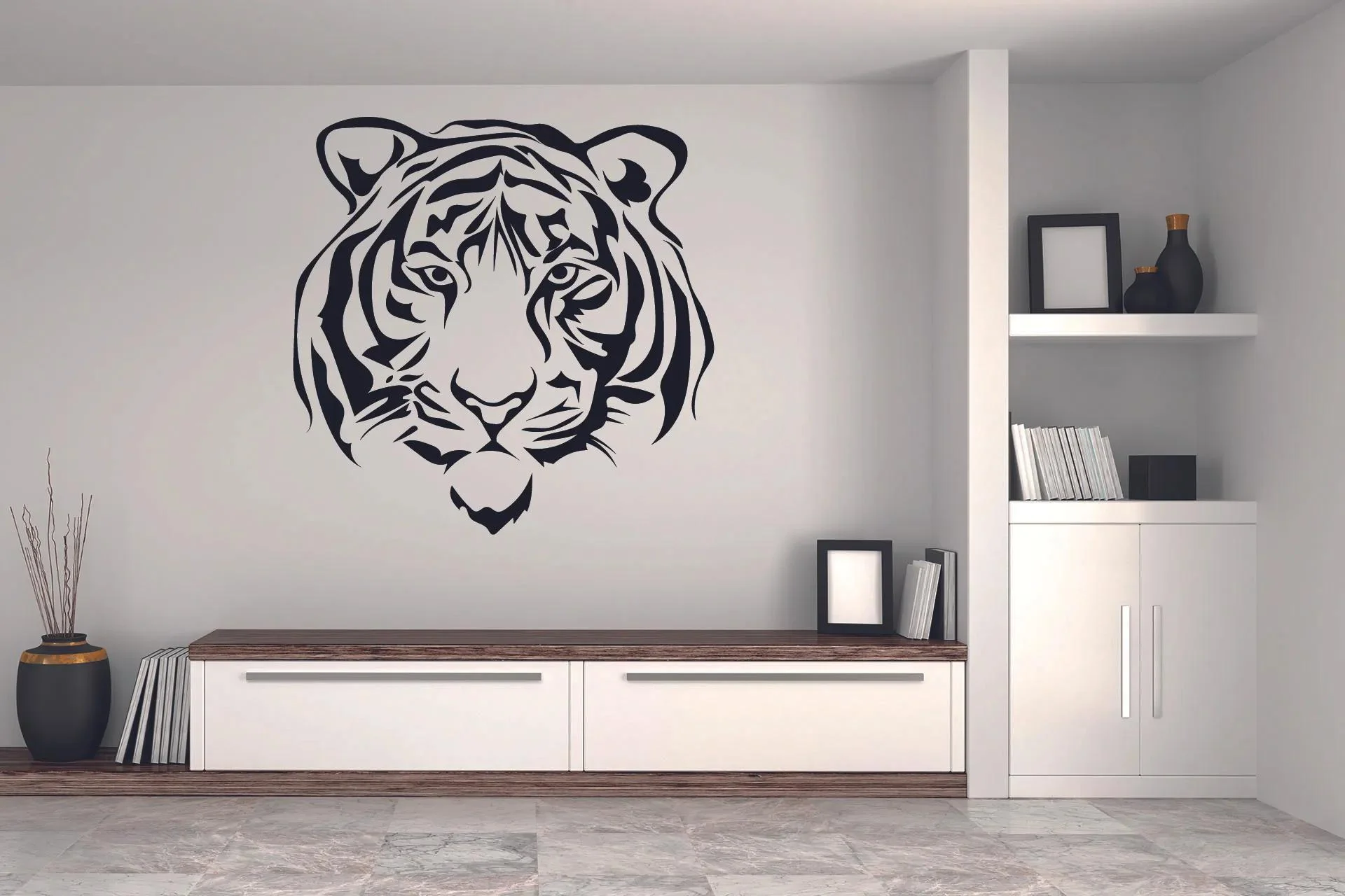 Stylová samolepka s motivem tygra, ideální pro ozvláštnění vašeho interiéru nebo exteriéru. Vyrobena z kvalitní, ekologické fólie s matným povrchem, která zajišťuje výrazný vzhled a dobré viditelnosti ze všech úhlů.