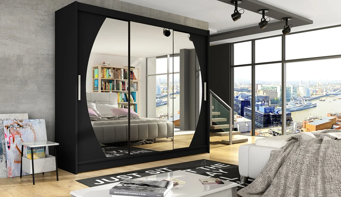 Šatní skříň ANDE V – černý mat se zrcadlem Skříně a skřínky