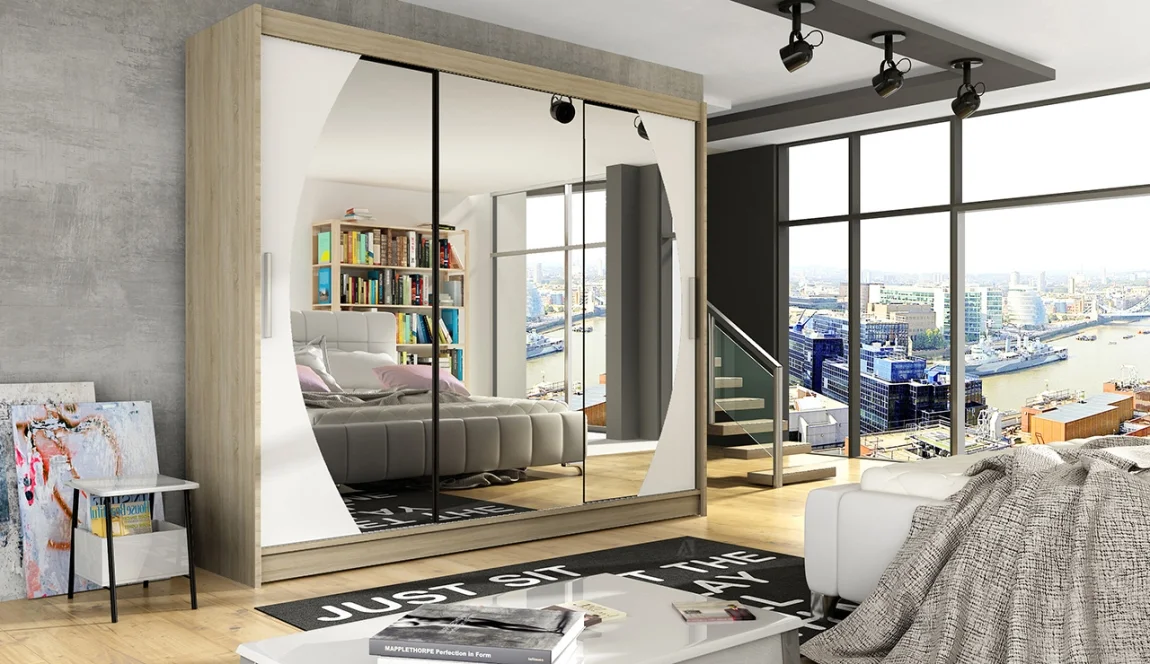Šatní skříň ANDE V s atypickým zrcadlem Skříně a skřínky