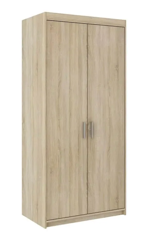 Využít ji můžete v ložnici, studentském či dětském pokoji i v obývacím prostoru. Do polic a šatní tyče uložíte vše potřebné, přehledně a rychle. Vnitřní uspořádání je vyobrazené na perokresbě. Nábytek je vyroben z laminované dřevotřísky v odstínu dub sonoma; lamino je odolné vůči poškrábání, vlhkosti a vysokým teplotám, což zaručuje dlouhou životnost povrchu. Dveře mají plastové úchyty. Přesně díky dekoru a kvalitní povrchové úpravě skříň snadno sladíte s různými styly nábytku. Možnost dokoupení nadstavce nad skříň umožní rozšířit úložný prostor. Dodáváme v demontovaném stavu.