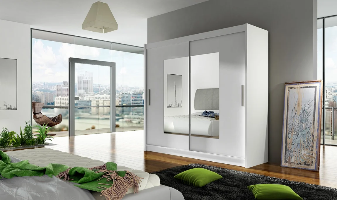 Šatní skříň GAMBA VII – bílé matné provedení se zrcadlem Skříně a skřínky