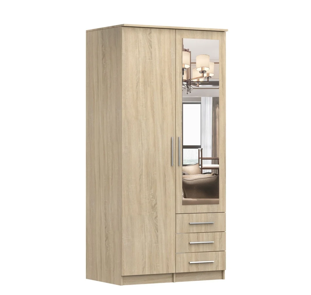Šatní skříň s vestavěným zrcadlem v dekoru dub sonoma nabízí stylové a praktické řešení pro šatník. Její rozměry 100 x 210 x 64 cm poskytují dostatek místa pro oblečení a doplňky.