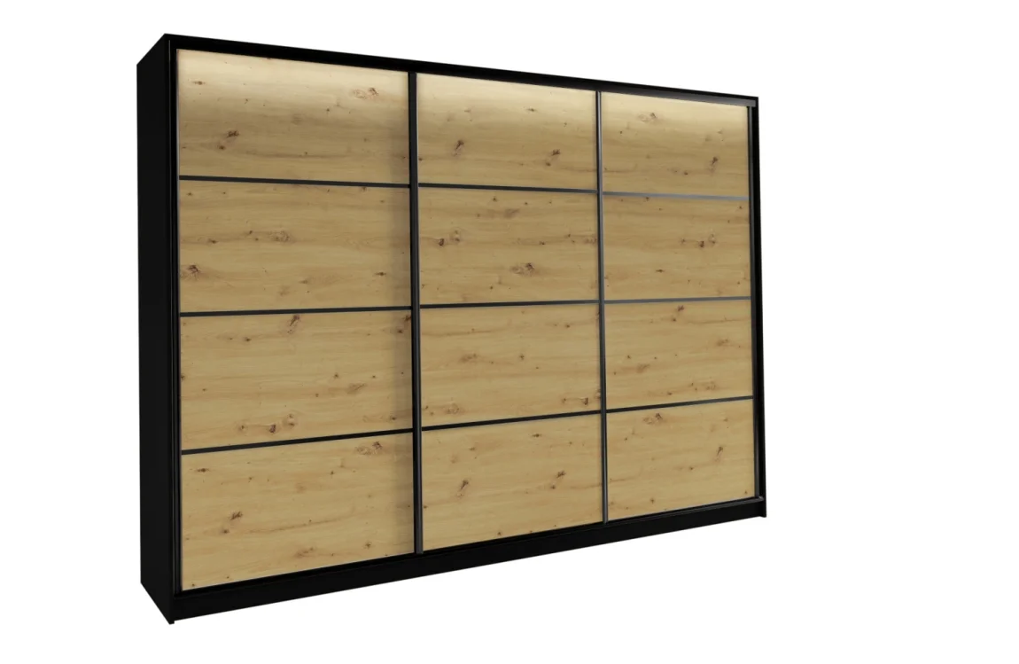Šatní skříň HARAZIA 280 bez zrcadla, černý mat/dub artisan Skříně a skřínky
