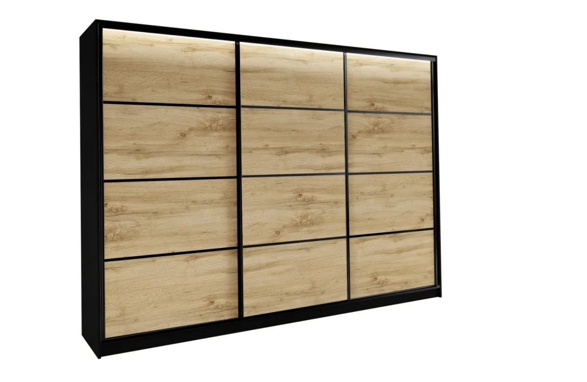 Šatní skříň HARAZIA 280 bez zrcadla – černý mat/dub wotan Skříně a skřínky