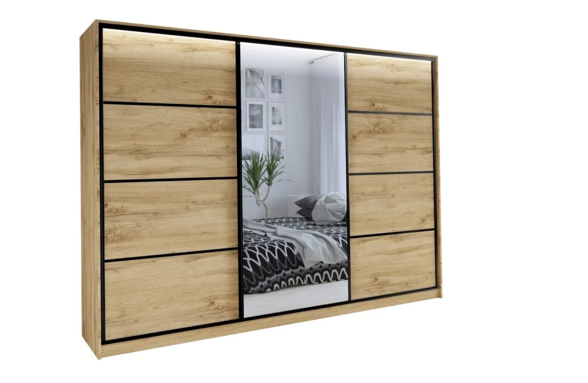 Šatní skříň HARAZIA 280 se zrcadlem, dub wotan Skříně a skřínky
