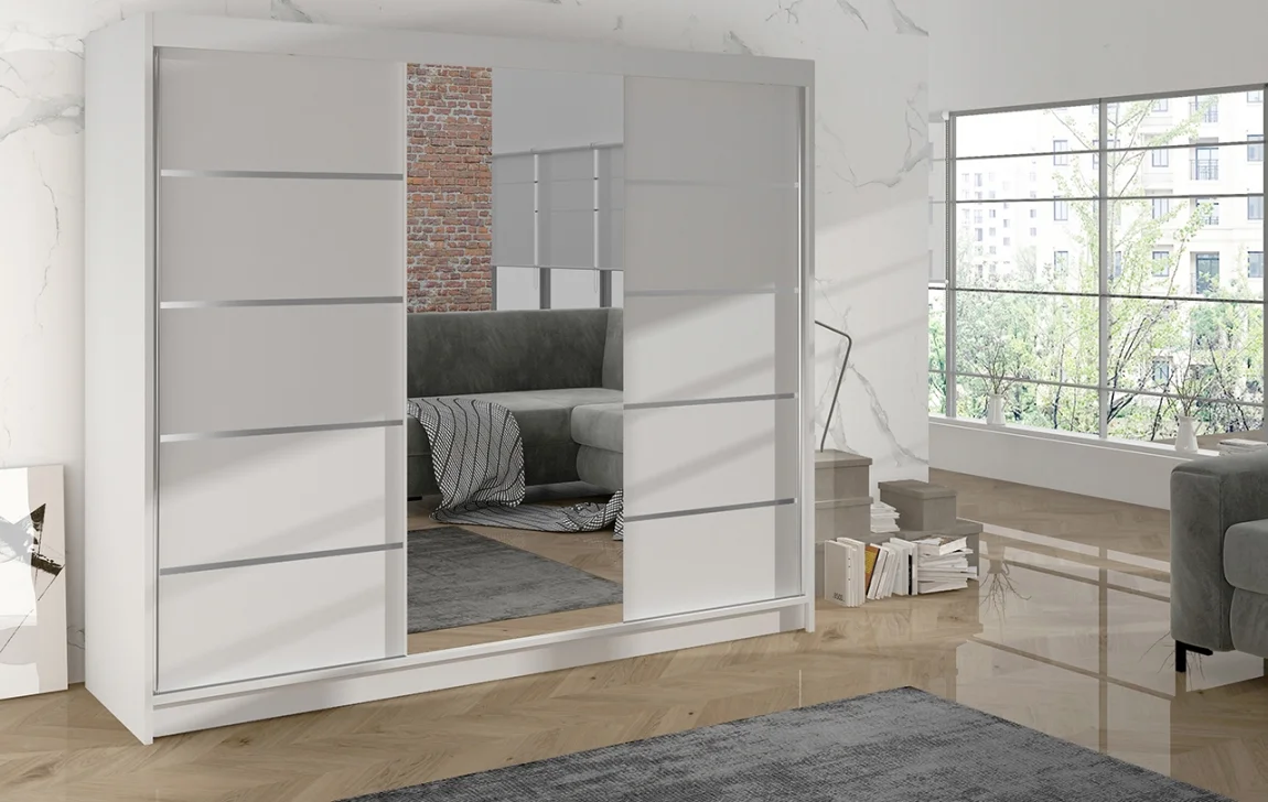 Konstrukce je vyrobena z laminované desky o tloušťce 16 mm s ABS hranami, která zaručuje pevnost a dlouhou životnost. Dveře jsou vedeny hliníkovými kolejnicemi Sevroll, jež zajistí tichý a plynulý chod, a úchyty ve formě hliníkové lišty poskytují stabilní a pohodlný úchop. Dodáváno v demontu, ale díky jednoduchému návodu ji zvládnete snadno smontovat. Zrcadlo navíc opticky zvětší prostor, díky čemuž bude váš pokoj působit svěže a prostorně.