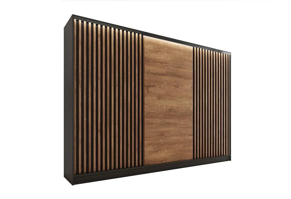 Šatní skříň INSULAR 3D 280 bez zrcadla, černý mat/dub lefkas Skříně a skřínky