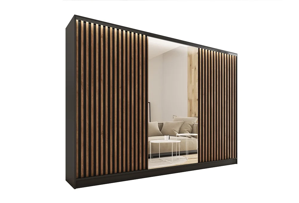 Šatní skříň INSULAR 3D 280 se zrcadlem černý mat/dub lefkas Skříně a skřínky
