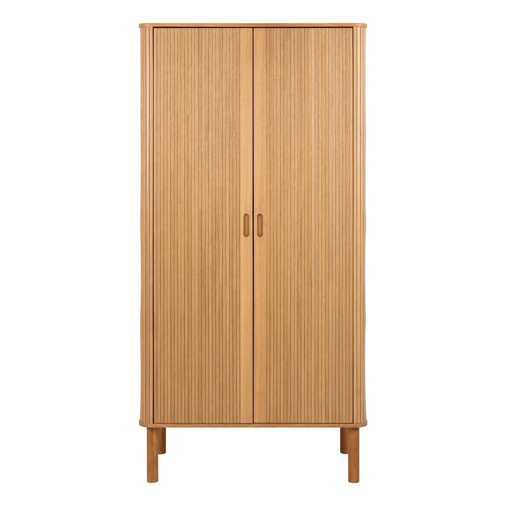Elegantní šatní skříň Langley v dekoru přirozeného dubu nabízí moderní a funkční úložný prostor. Její lamelové čelo a lakovaný povrch dodávají nábytku svěží vzhled a odolnost. Uvnitř najdete praktickou tyč a polici, které uspokojí vaše potřeby pro organizaci oblečení. Stabilitu zajišťují robustní kulaté nohy z dubového dřeva. Díky certifikátu FSC™ můžete mít jistotu, že skříň byla vyrobena s ohledem na udržitelné lesní hospodářství. Tento kousek je ideální volbou pro milovníky přírodního designu a ekologicky uvědomělé spotřebitele.