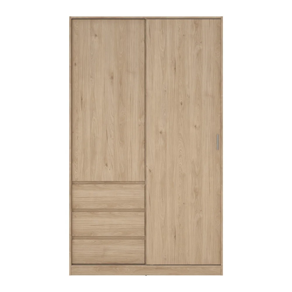 Její rozměry 119x200x60 cm poskytují dostatek prostoru pro vaše oblečení, zatímco posuvné i klasické dveře umožňují snadný přístup a úsporu místa. Skříň je vybavena šatní tyčí, nastavitelnými a pevnými policemi a třemi praktickými zásuvkami, které udrží vaše věci přehledně uspořádané.