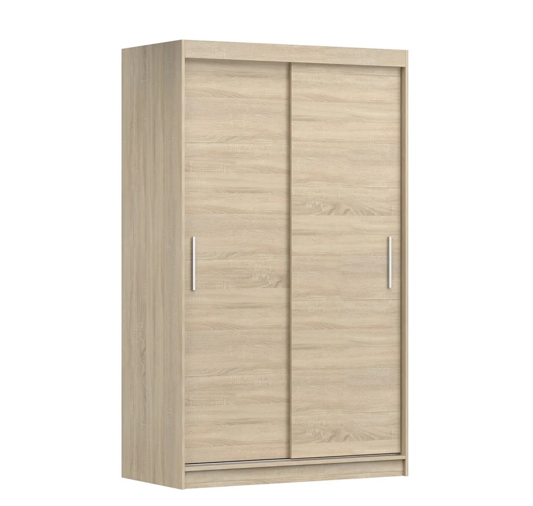 Šatní skříň s posuvnými dveřmi v provedení dub sonoma nabízí praktický úložný prostor pro vaše šatstvo. Rozměry: 120 cm šířka, 200 cm výška a 61 cm hloubka. Základ tvoří lamino tloušťky 16 mm s ABS hranami, což zajišťuje odolnost a snadnou údržbu.