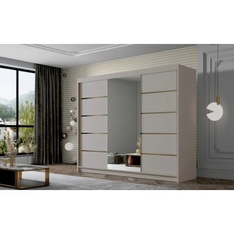 Šatní skříň Tucson VI s posuvnými dveřmi a zrcadlem, kašmír Skříně a skřínky