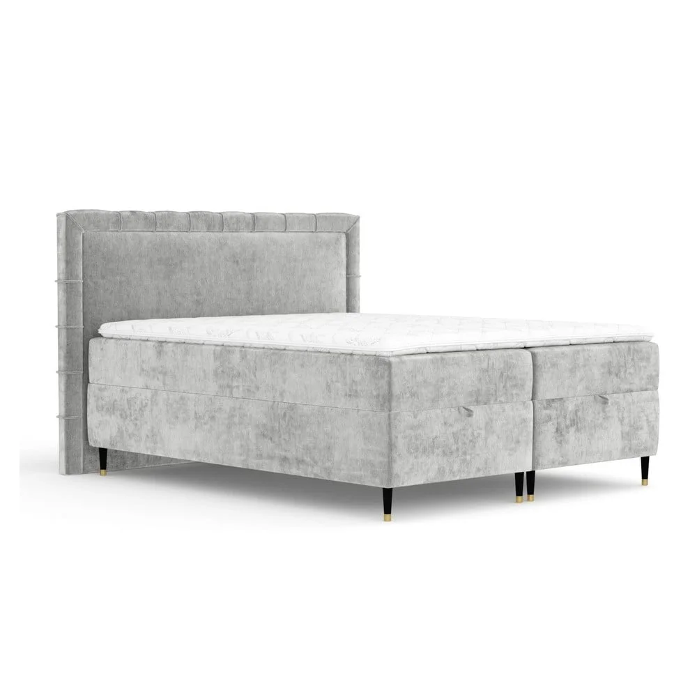 Objevte dokonalou kombinaci komfortu a praktičnosti s touto světle šedou boxspring postelí, která nabízí nejen moderní vzhled, ale i dostatek úložného prostoru. Postel je vybavena vysoce kvalitní matrací s taštičkovými pružinami (262 pružin/m²), jež zajišťují optimální oporu a pohodlí při odpočinku. Navíc je doplněna oboustranným topperem z elastické polyuretanové pěny, který zvýší pohodlí a prodlouží životnost vaší matrace.