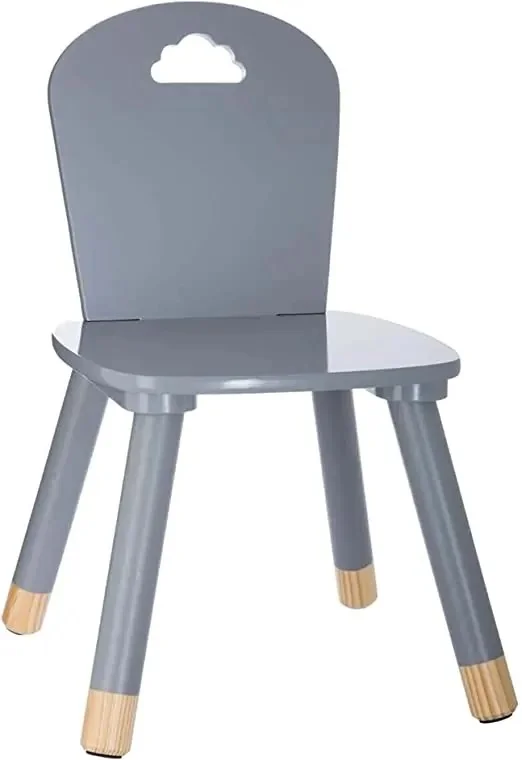 Elegantní dětská stolička ve světlém šedém odstínu kombinuje pevnost borovicového dřeva s odolným lakovaným povrchem MDF. Díky svým kompaktním rozměrům je ideální pro vybavení skandinávského dětského pokoje, přičemž poskytuje pohodlné sezení s jemným opěradlem.