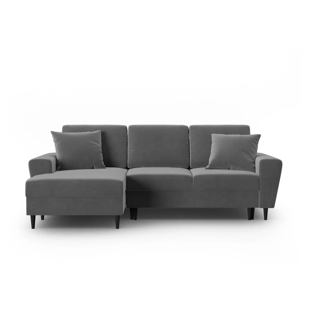Šedá sametová rohová pohovka Kyoto s úložným prostorem Rohové sedací soupravy