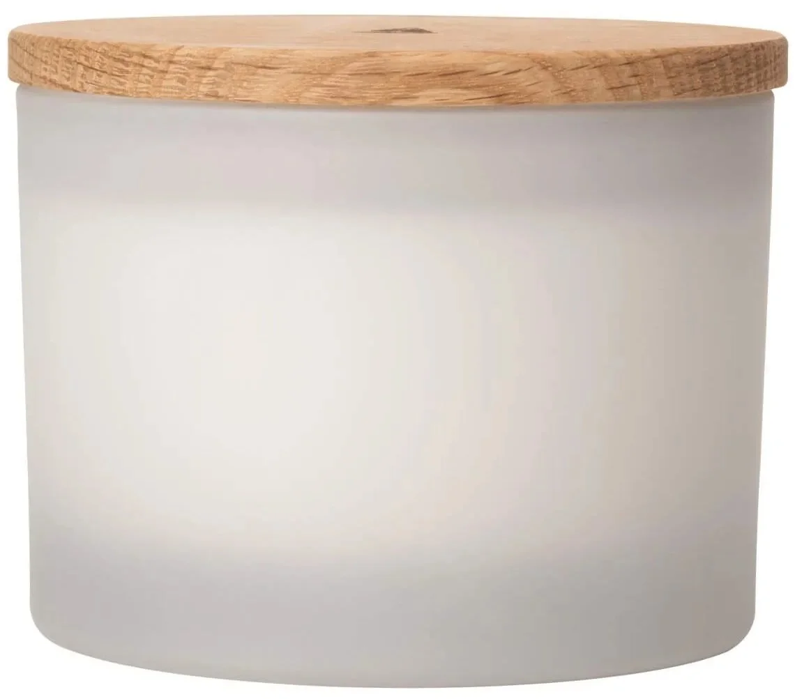 Elegantní vonná svíčka s moderním šedým sklem a přírodním dubovým víčkem s rytinou. Vyrobena z kvalitního vosku se třemi knoty, která vám zajistí rovnoměrné a dlouhotrvající hoření až přibližně 20 hodin.
