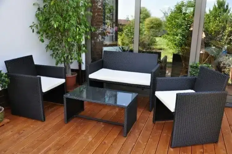 Konstrukce sedací soupravy AXIN 1 kombinuje odolnou ocelovou kostru s ručně opleteným umělým ratanem, což zaručuje pevnost a elegantní vzhled pro venkovní i interiérové použití. Sestavu tvoří pohovka, dvě křesla a stolek s deskou z temperovaného skla, doplněné o kompletní sadu polštářů s voděodolnými potahy. Rozměry jednotlivých částí: pohovka 109 × 60 × 78 cm s nosností 200 kg, křesla 59 × 60 × 78 cm s nosností 110 kg a výškou sedu 42 cm; stolku 79 × 48 × 42 cm s temperovanou skleněnou deskou. Nohy všech dílů jsou plastové, aby nedošlo k poškození podlahy či terasy. Polstrování má béžovou barvu, potahy jsou snímatelné a voděodolné; rám je lakován černou barvou. Díky odolnému provedení se hodí pro dlouhodobé užívání na zahradě i v interiéru a snadno se udržuje. Pro ještě pohodlnější údržbu lze potahy vyjmout a vyprat, což šetří čas i náklady.