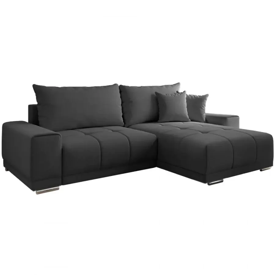 Ideální volba do menších prostor, protože nezabírá zbytečně mnoho místa a přitom nabízí komfortní posezení. S úložným prostorem a rozkládací funkcí poskytuje pohodlí po náročném dni a zároveň nabídne extra prostor pro hosty. Rozložená plocha činí 148x203 cm, takže se na ní výborně vyspí i hosté. Výplň tvoří kombinace PUR pěny a pružiny faliste, která zajišťuje dobrou oporu a dlouhodobou odolnost. Sedačku doplňují dekorativní polštáře a dva velké opěrné polštáře, které nahrazují opěrku zad. Materiál: látka SORO; provedení: tmavě šedá. Odolnost látky podle Martindale testu dosahuje 90 000 otěrek. Rozměry (š x v x h): 261 x 178 x 98 cm. Výška sedu 40 cm, hloubka sedu 58/90 cm. Spodní prostor nad podlahou má výšku 5 cm. Dodáváme v demontu.