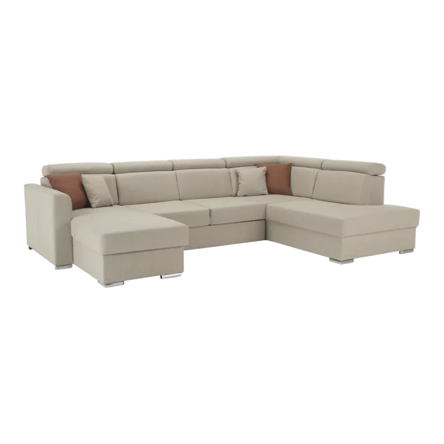 Celočalouněná luxusní sedačka s rozkladem a úložným prostorem MARIETA U s pravým provedením přináší komfortní posezení a praktické využití v jednom. Potahová látka kabel 02/05 v kombinaci béžové a cihlové dodává elegantní vzhled. Součástí jsou čtyři polštáře pro ještě větší pohodlí. Plocha lůžka činí 130x260 cm, takže skvěle poslouží i při občasném spaní hostů. Možnost zakázkové výroby v dalších barevných provedeních dle aktuální nabídky dodavatele; ceny a vzorníky jsou k dispozici na vyžádání. Dodací lhůta u zakázkové výroby je 6–8 týdnů.