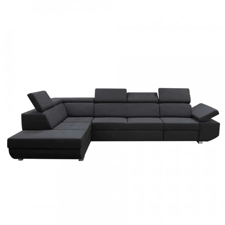 Čtyři polohovací opěrky hlavy zajišťují dokonalou oporu krční páteře a opěrka na ruce s funkcí sklápění zvyšuje praktičnost při relaxaci. Výplň tvoří kvalitní PUR pěna doplněná pružinami faliste, což poskytuje komfortní sezení a dlouhodobou pohodlnost. Design doplňuje látka Stark, barva 382 tmavě šedá, s vysokou odolností textilie – Martindale až 50 000 oděrek. Rozměry (ŠxVxH): 345x220x103 cm; plocha na spaní (ŠxD): 118x184 cm; výška sedu 42 cm, hloubka 53 cm. Spodní prostor má výšku 5 cm a sedací soupravu dodáváme v demontu. Tuto levou variantu MAVIS lze doplnit o další provedení a skvěle se hodí jako součást stylového obývacího pokoje spolu s doplňky a dělícími stěnami.