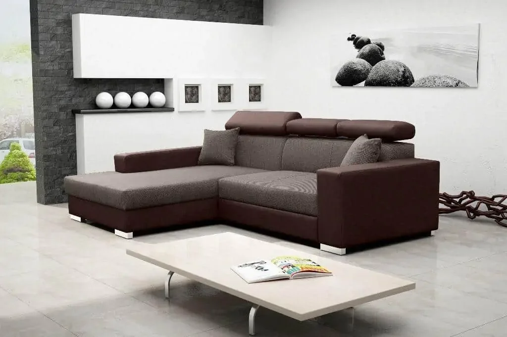 Elegantní rohová sedací souprava Mexicana Lux je rozkládací a zároveň nabízí praktický úložný prostor. Po jednoduchém rozložení vznikne prostorné lůžko pro občasné spaní. Výplň sedáku tvoří kombinace pružin Bonell a faliste s kvalitní PUR pěnou, což zajišťuje komfortní sezení a dlouhou životnost. Díky polohovacím opěrkám hlavy si vždy můžete zvolit optimální úhel pro relaxaci. Povrch tvoří kombinace látky Inari a EKO kůže a je k dispozici v několika barevných provedeních. V ceně jsou dva dekorační polštářky; ostatní dekorace na vizualizaci nejsou součástí nabídky. Navíc disponuje praktickým rozkladem a úložným prostorem, takže ušetříte místo v obývacím pokoji. Díky nadčasovému provedení se skvěle hodí do různých interiérů a nabídne komfort pro každodenní používání i pro hosty.
