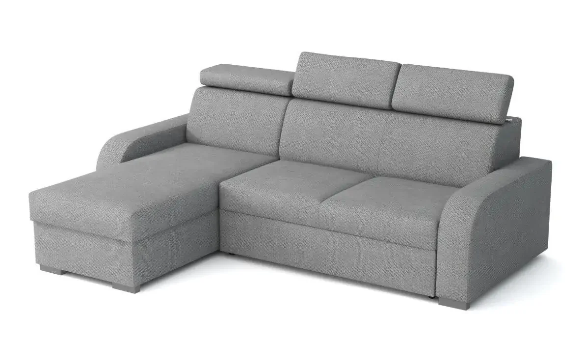 Rozkládací mechanismus s automatem vytvoří během okamžiku prostorné lůžko 130x200 cm pro občasné přespání návštěv. Součástí je praktický úložný prostor pro lůžkoviny či jiné věci. Čalounění je z kvalitní látky a sedáky kombinují pružiny s HR pěnou pro komfort při sezení i odpočinku. Pro ještě větší pohodlí poslouží polohovací opěrky hlavy. Uvedená cena platí pro rohovou variantu; barevné odchylky na fotografiích jsou možné. Rozměry: výška 85–100 cm, výška sedu 43 cm, šířka 235 cm, délka 170 cm. Hmotnost přibližně 140 kg. Záruka 2 roky.