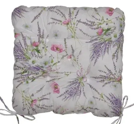 Univerzální sedák UNI Maxi kombinuje motiv levandule a vlčích máků pro svěží vzhled jídelního i zahradního nábytku. Jeho výplň tvoří jemně drcený molitan, který zajišťuje komfortní sezení i při delším užívání.