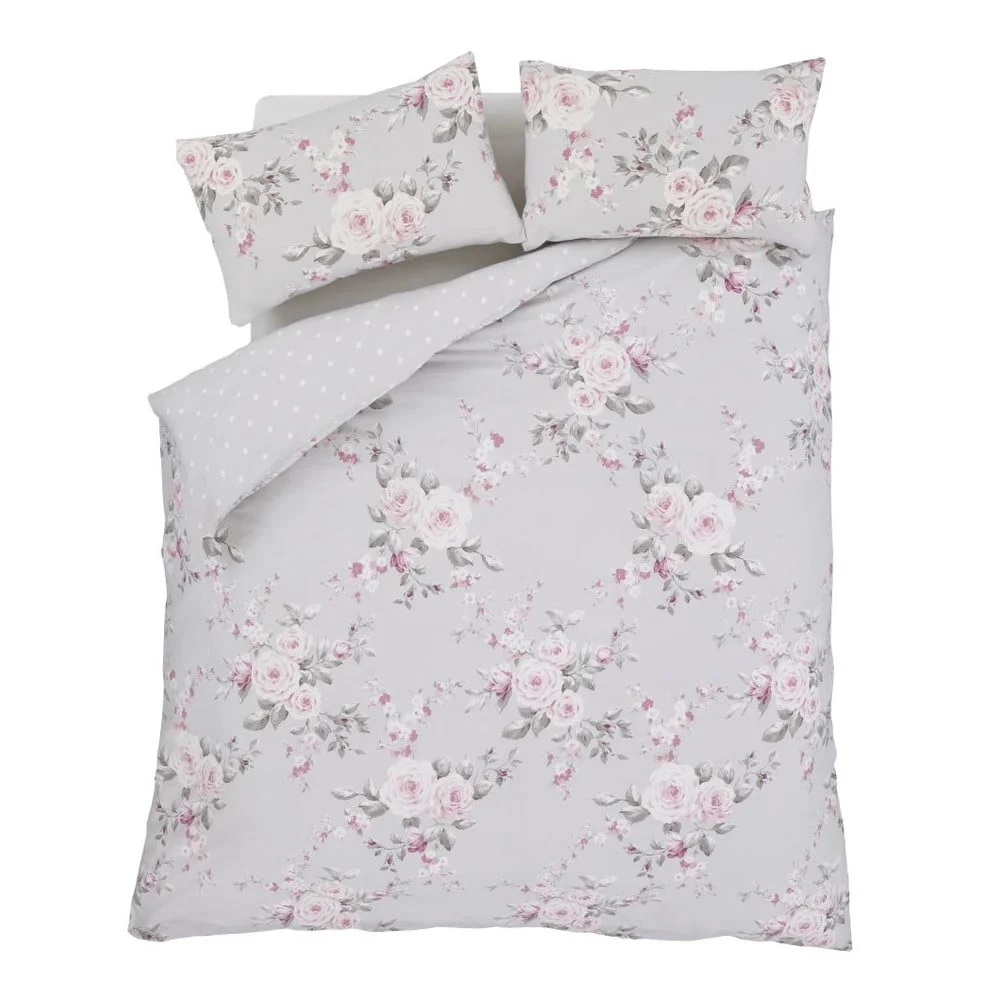 Šedé povlečení Catherine Lansfield Canterbury Rose 135x200 cm Povlečení