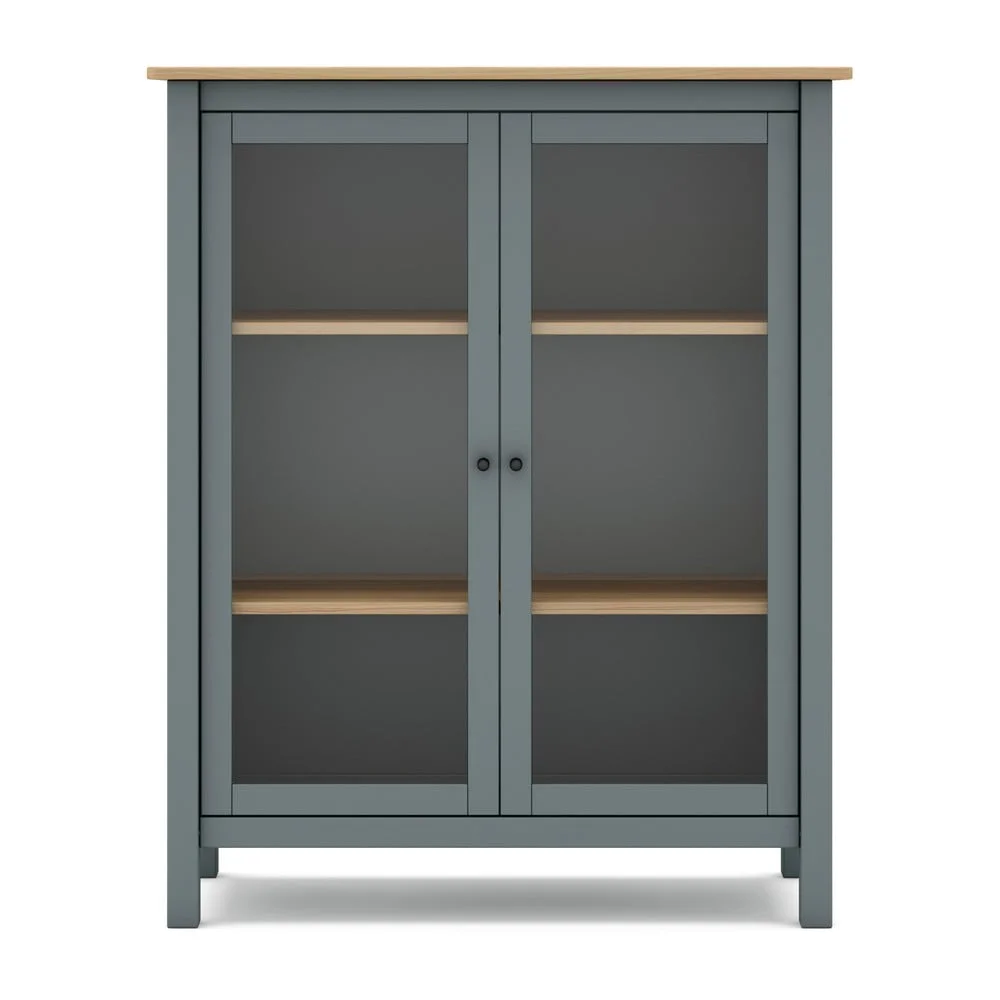 Šedozelená vitrína z borovicového dřeva 90x110x40 cm Misti Vitríny