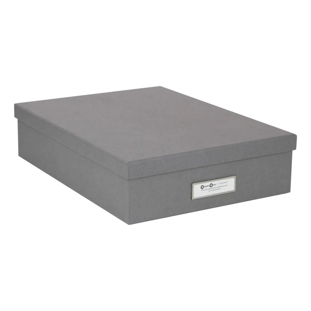 Šedý úložný box A4 s jmenovkou Bigso Box Oskar Organizéry do pracovny