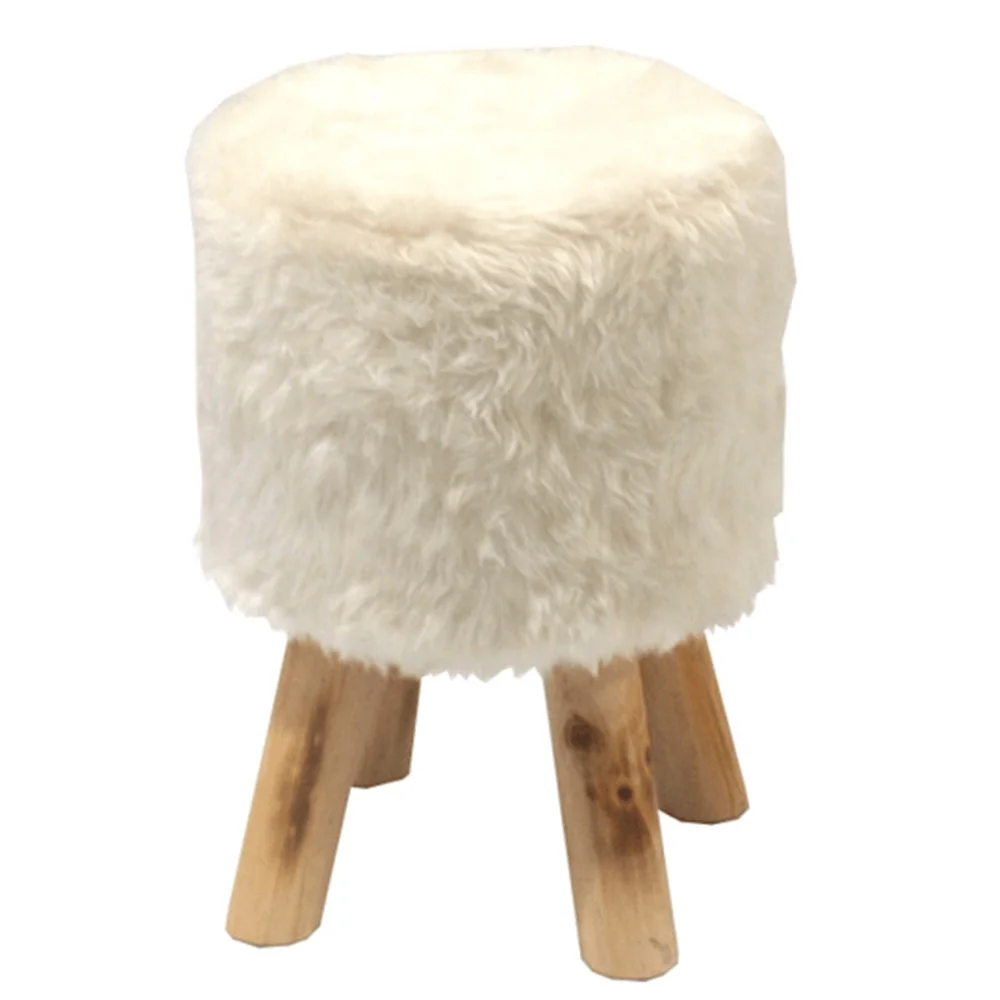 Taburet SELKET kombinuje komfortní sedák z umělé kožešiny v bílé barvě s pevnými borovicovými nohami. Rozměry 28 × 42 × 28 cm zajišťují kompaktní, ale pohodlný prostor k sezení. Sedák je pokrytý umělou kožešinou a působí hřejivě a stylově, zatímco dřevěná konstrukce dodává stabilitu.