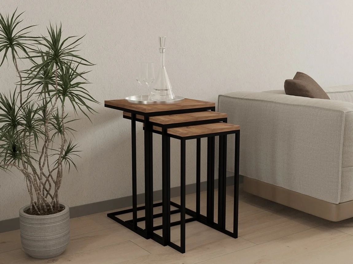 Set konferenčních stolků DONOVAN v kombinaci atlantské borovice a černé dodá vašemu obývacímu prostoru moderní a čistý vzhled. Povrch desek je z melaminované dřevotřísky, který je odolný proti škrábancům a snadno se čistí, zatímco kovový rám zaručuje pevnost a dlouhou životnost. Deska má tloušťku 18 mm a díky níž stolky působí stabilně. Jeden kus měří 40 cm na šířku, 61,8 cm na výšku a 40 cm do hloubky. Dodáváno v demontu pro pohodlnou přepravu a rychlou montáž. Tento set je skvělou volbou pro praktické odkládací plochy vedle sedačky a zároveň působí stylově díky kontrastu dřevěného dekóru a černého kovu.