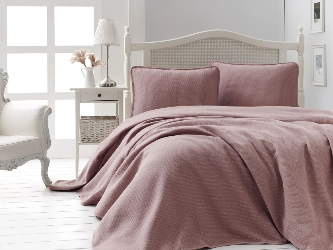 Zažijte skutečný komfort s naší soupravou z dvojitého piké, vyrobenou ze 100% bavlny. Hustota tkaniny 380 g/m² zajišťuje jemný, nadýchaný dotek po celou noc. Přehoz o rozměru 220 × 240 cm doplňují dva povlaky na polštáře 50 × 70 cm, které dodají ložnici jednotný vzhled. Povlečení je neelastické a uzávěr polštářů tvoří obálkový systém pro pohodlné a stylové používání. V barevném provedení prachově růžové barvy ložnici dodají eleganci a klid. Snadná údržba: lze prát na 30 °C v pračce. S touto sadou získáte nejen moderní vzhled, ale i dlouhotrvající komfort během každé noci.