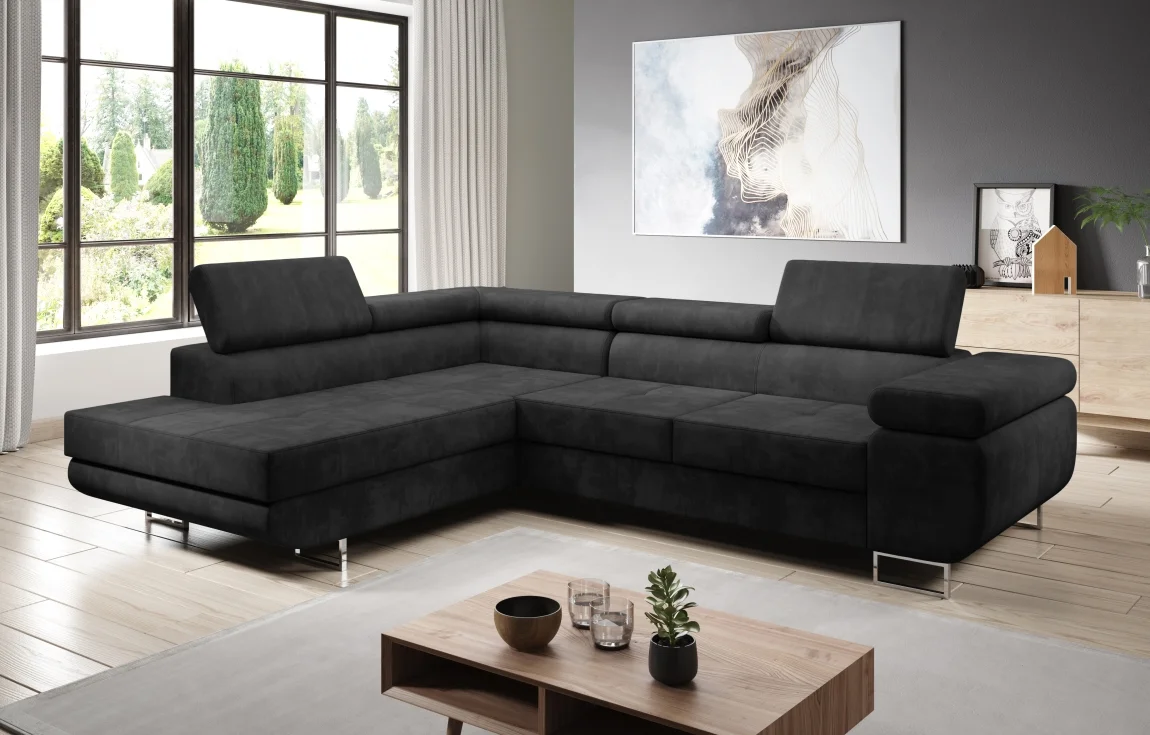 SINGER L Rohová rozkládací sedačka, levá, černá Sedací soupravy
