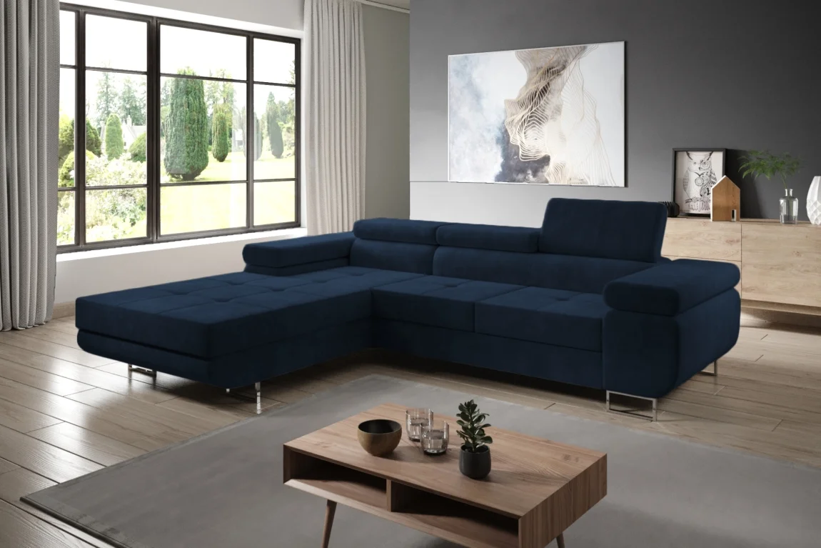 SINGER rohová rozkládací sedačka – levá, modrá Sedací soupravy